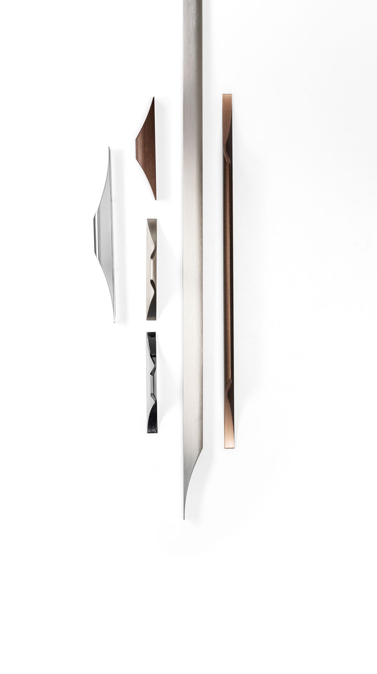 Brikk is a simple, innovative and highly versatile handle. Made in aluminium, its gentle curves allow for easy, comfortable use. It has an extensive useful length and has been especially designed for horizontal placement on the upper part of doors and drawers in bathrooms and kitchens. It is available in 14 sizes and 3 finishes: polished chrome, stainless steel and antique bronze.