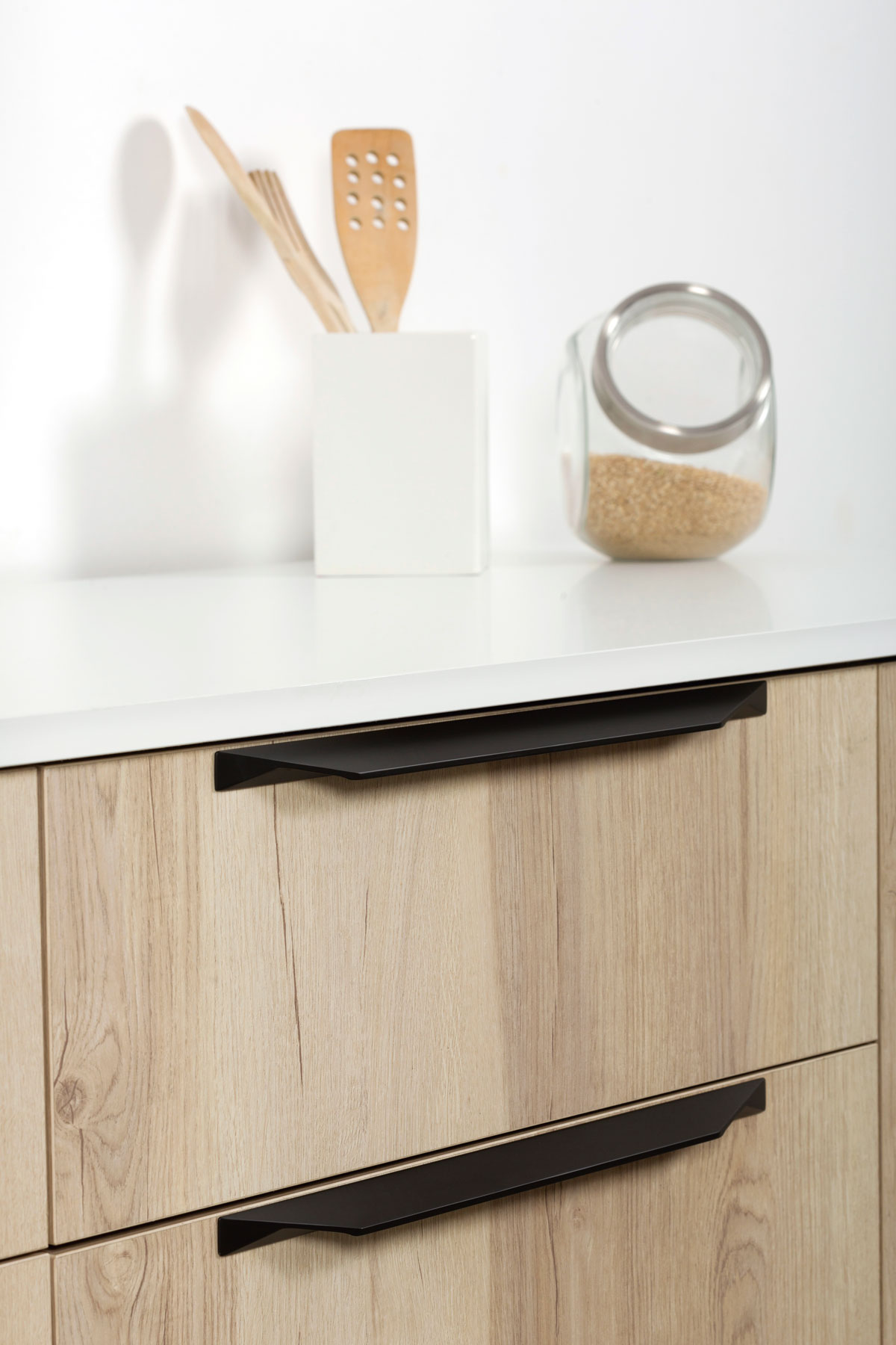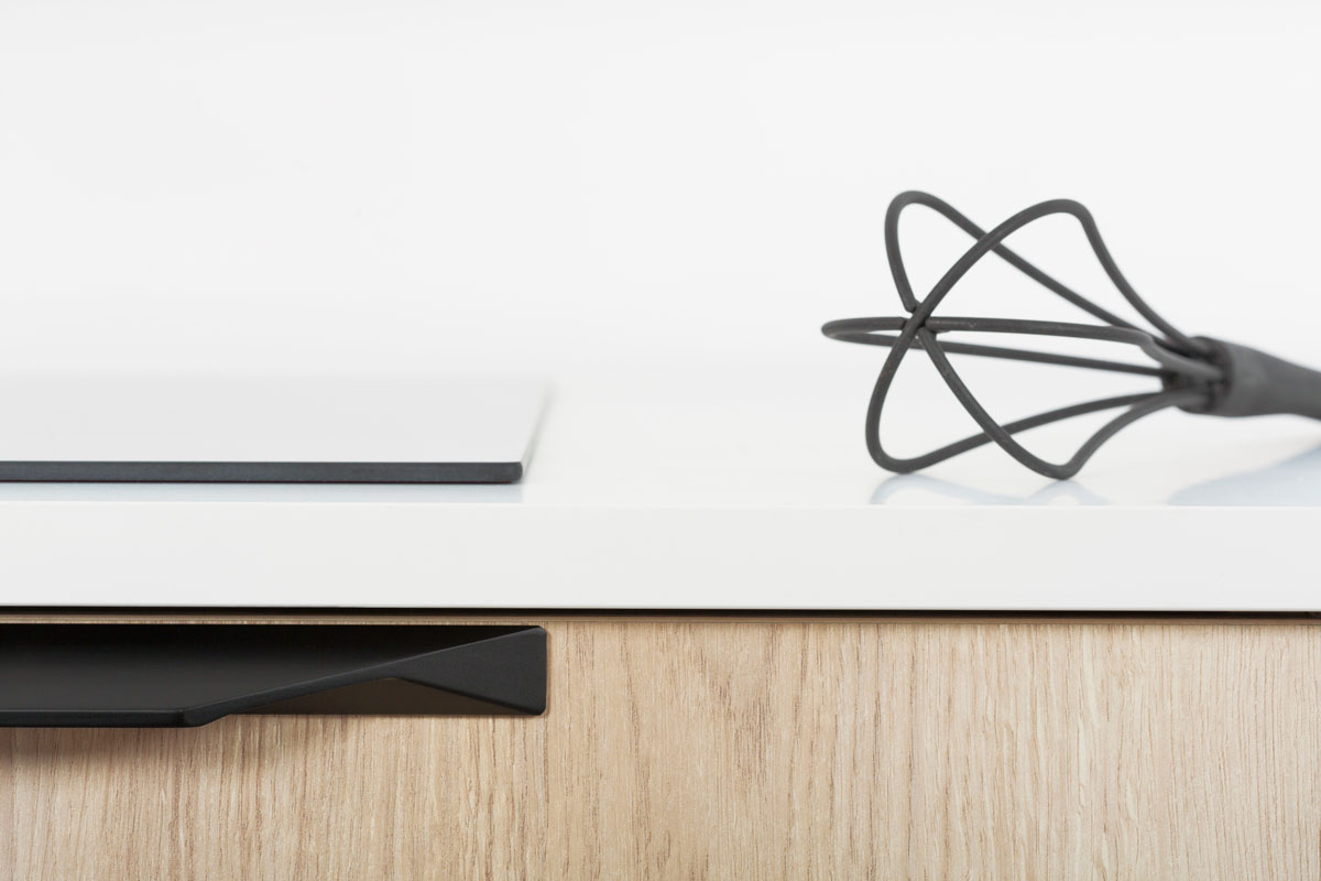 The Cutt handle is made of aluminum and is intended for use in big kitchens and office kitchens that are visible from the living room or dining room. The Cutt is a stripped-down variant of the Tamm model. It boasts a modern, sturdy design that is also very useful. It’s perfect for mounting near door edges or in the traditional, central location of modern handles. Polished chrome, stainless appearance, and matt black finishes are all available.