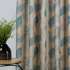 The vegetal pattern in shades of turquoise gold creates an elegant contrast suitable for a minimalist decor.