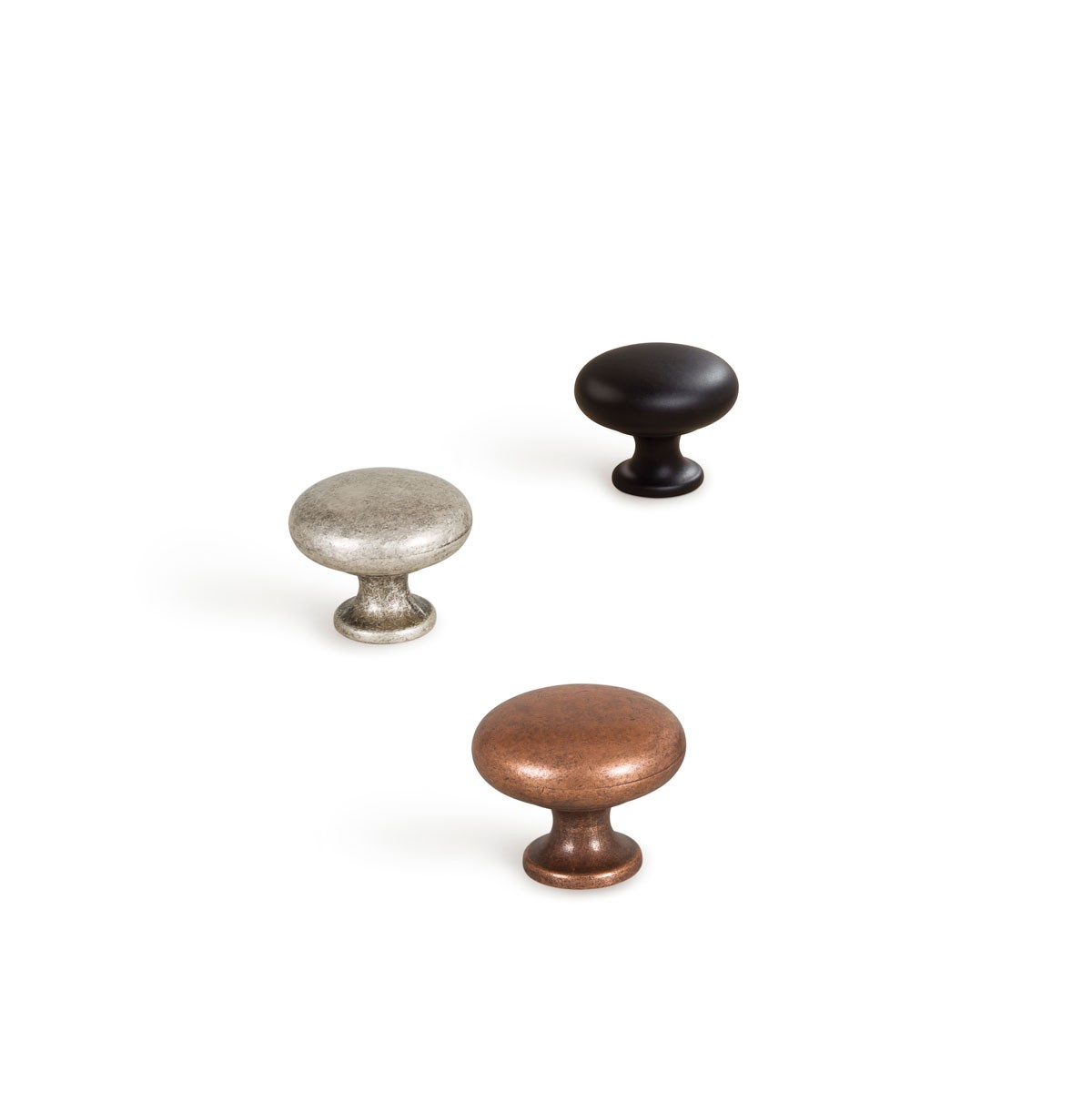 The Duke is a classic knob made in zamak whose design goes well with Victorian-style decor. Its irregular texture and aged finish in tune with today’s trends – with a look seen in contemporary furniture. It is available in ten different finishes which means it can be combined with other models of handles from Viefe® in order to achieve a perfect aesthetical match.