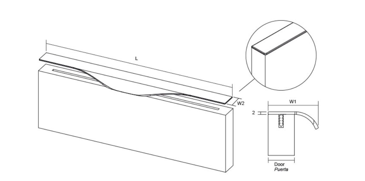 The Forma handle is made in aluminium and has an innovative design characterised by its graceful, arched lines on its front flange. When installed on the edges of doors and drawers, it takes up little space and only the flange protrudes, making it easy to use in both horizontal and vertical modes. Ideal for closets, kitchen furniture and bathrooms. Available in a stainless steel look and in 14 sizes, from 147 to 1,197 mm. For doors of 19, 20.5 and 22 mm.