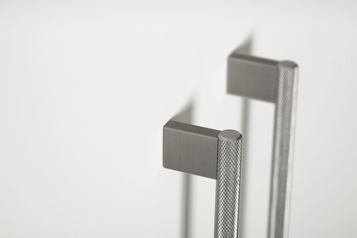The aluminum handle Graf Mini has evolved from the successful Graf knob with a modern, industrial aesthetic. Its texture with a mesh-like shape ensures a perfect grip when you pull on it. The two variations, with a knob or arched handle-like shape fit perfectly well with kitchen or bathroom furniture, in changing rooms, in bedrooms (from chests of drawers to bedside tables and to sets of drawers). It is also suitable for hotel facilities and all types of contract projects. It comes in 4 different sizes and finishes with a stainless steel look, dark, brushed brass and brushed black.