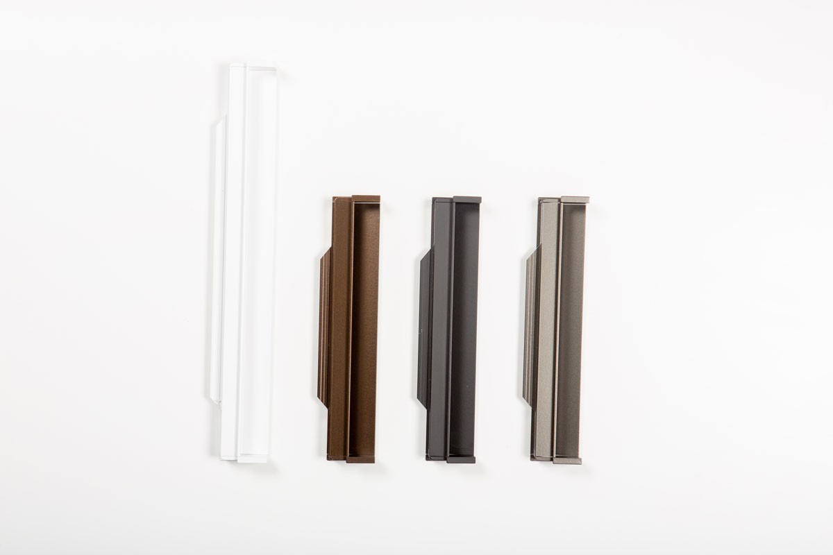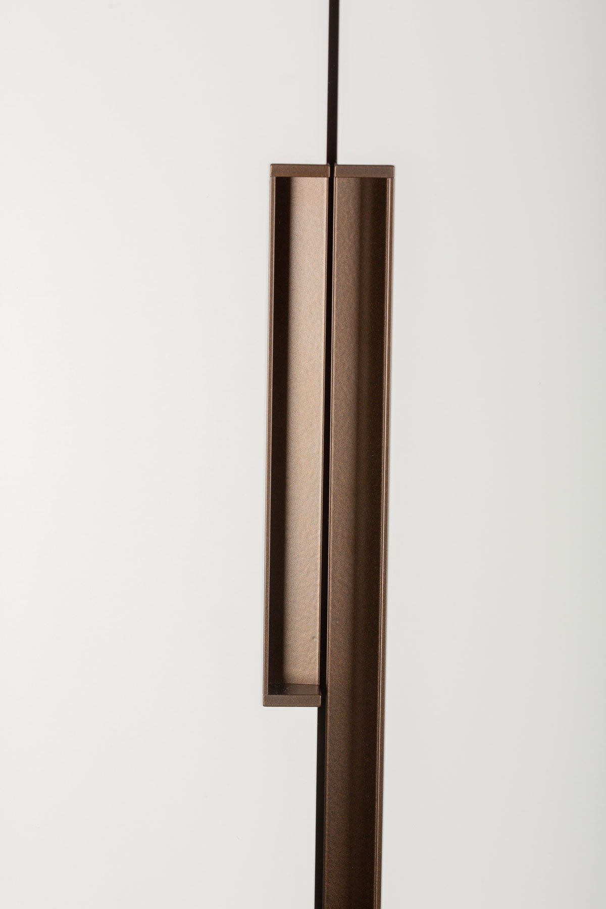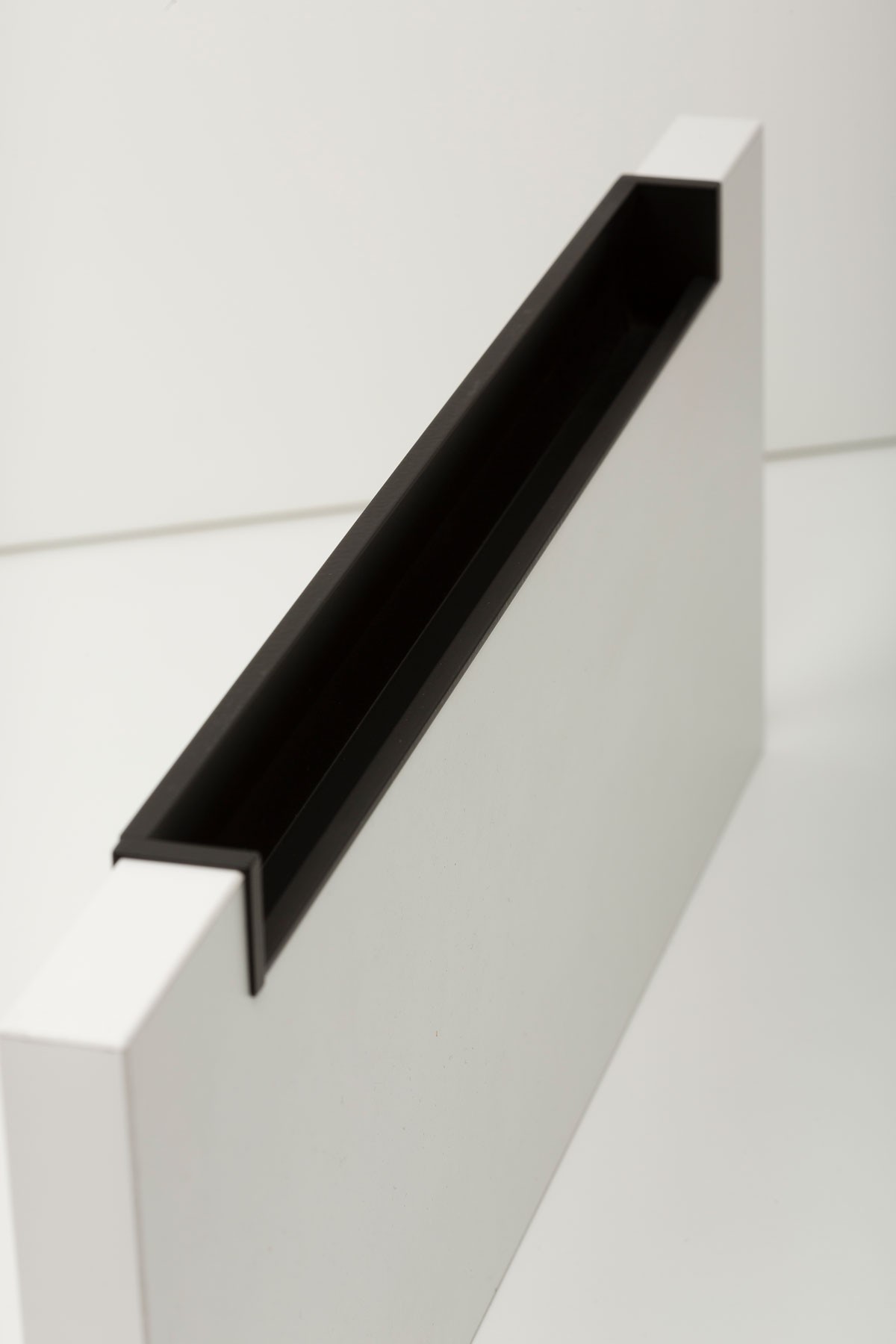 Hexxa is a handle with an aluminum built-in profile with an innovative design, different to all the models manufactured at Viefe® until now. Its two sides have a small incline which gives it a visual effect that is both modern and elegant. The singular characteristic of this model is that it allows you to play with a combination of sizes, as one of the doors can have a longer handle than the other so as to emphasize its fashionable features. It is a handle that can adapt to any size of door measurement that you wish, it is fitted without any complication and means the door can be opened and closed in a really comfortable way. It is available in matt white, matt black, metallic grey and metallic brown. It has been created especially to be fitted to kitchen cupboards and drawers.