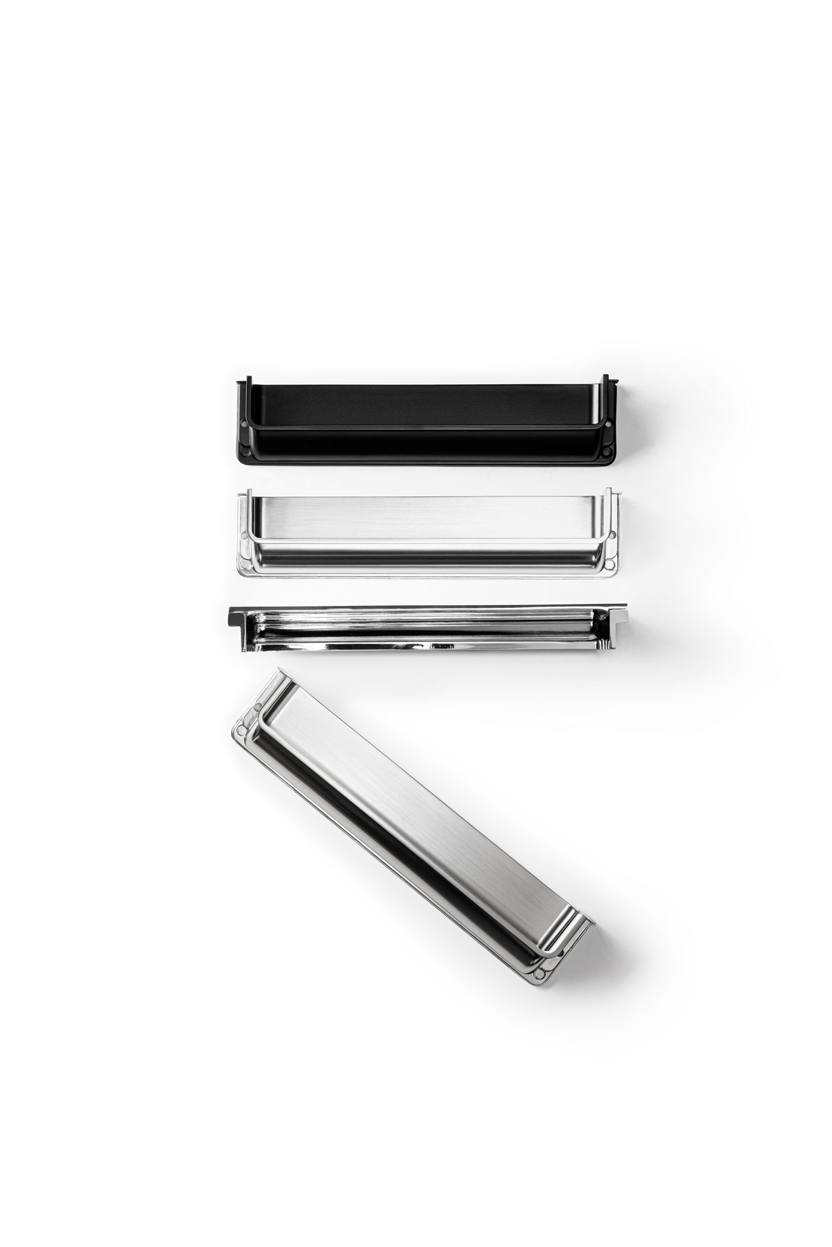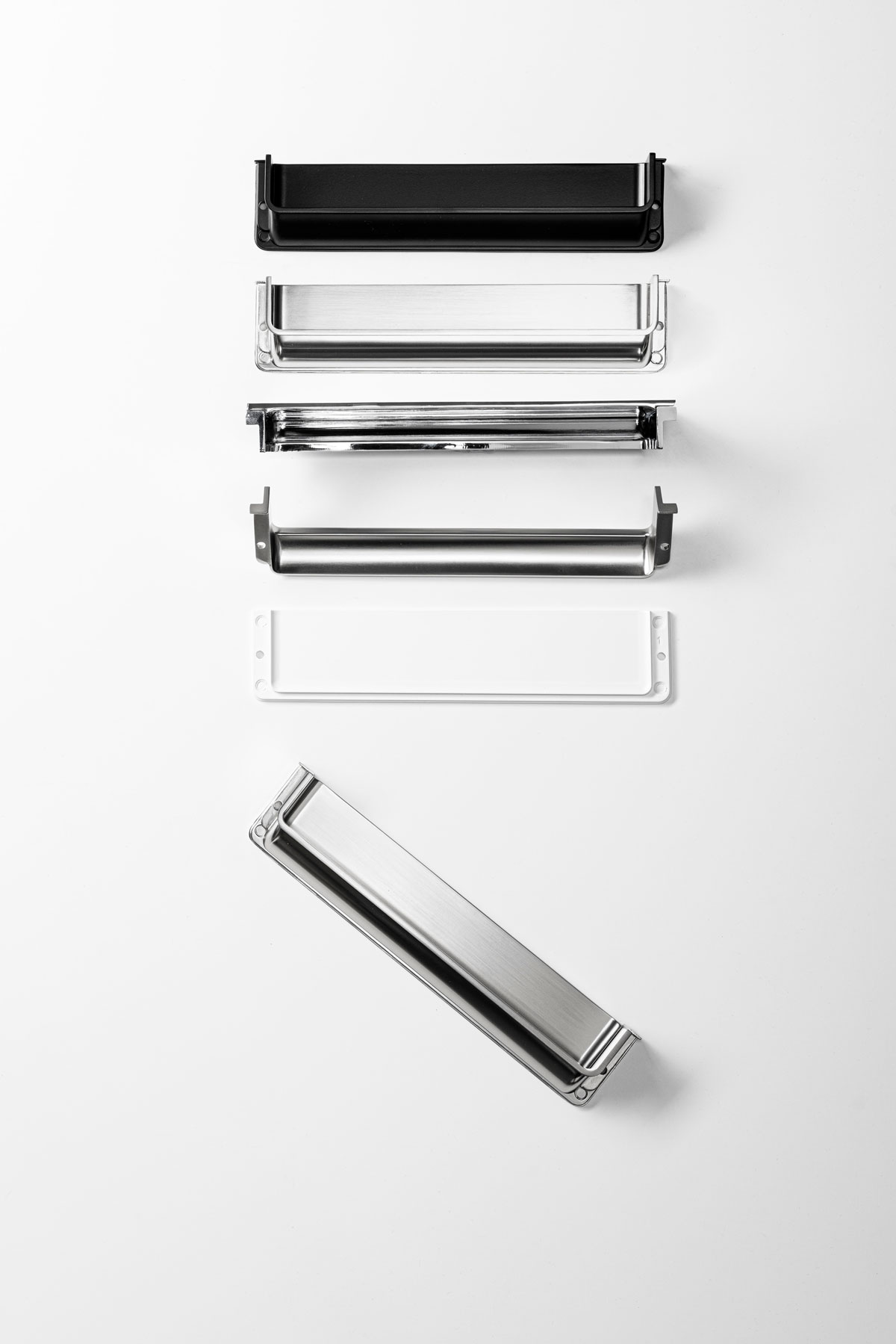 The Nest Handles Collection is known for its adaptability. They were designed so that the L-shaped components, which are framed by a translucent halo, can be combined in a thousand and one various ways, depending on the individual’s style and imagination. They come in black, white brown, lime, orange, blue, and violet, and are made of acrylic with a polyester resin injection. They can be used in conjunction with the Core handle model.