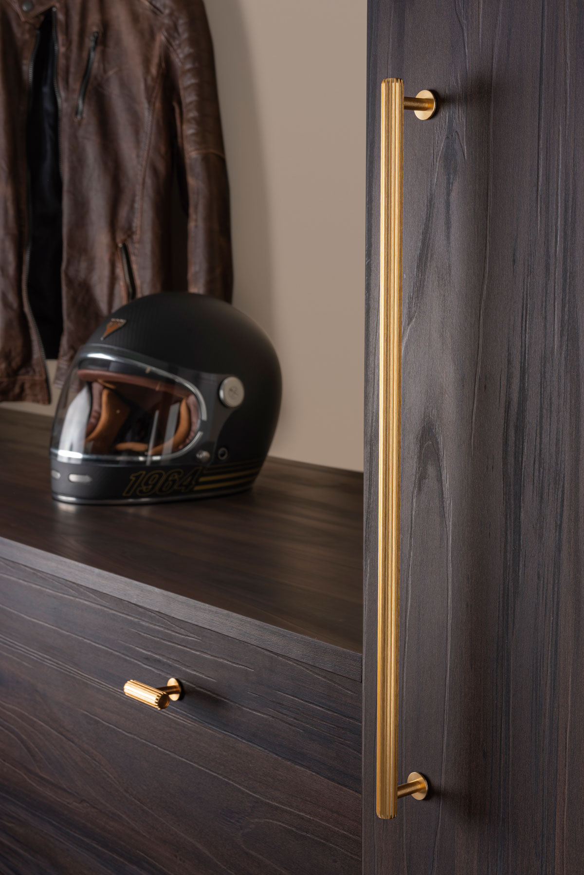 The Rille handle, designed by Patricia Roig and available in stainless steel, dark brushed brass, and brushed black, is great for adding a sense of modernism to any space. With curved contours and optimal practicality, it offers a beautiful appearance.