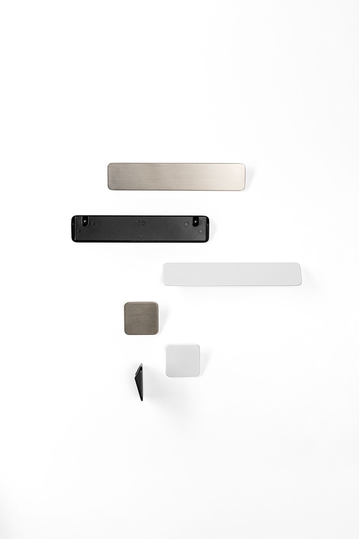With a triangular profile, the Switch knob and handle are characterized by their discretion, elegance and simplicity. Available in three finishes -brushed nickel, matt white and matt black -manufactured in zamak, Switch is the perfect accessory for any type of decorative style thanks to its versatility. Its smooth, flat lines means it can be integrated to doors and drawers in kitchens, bathrooms, dressing rooms, bedrooms and contemporary offices with pleasant aesthetic results both to the touch and sight. The functional Switch collection includes knobs, handles and wall hooks which allow for an infinite number of combinations creating relaxing harmonious surroundings.