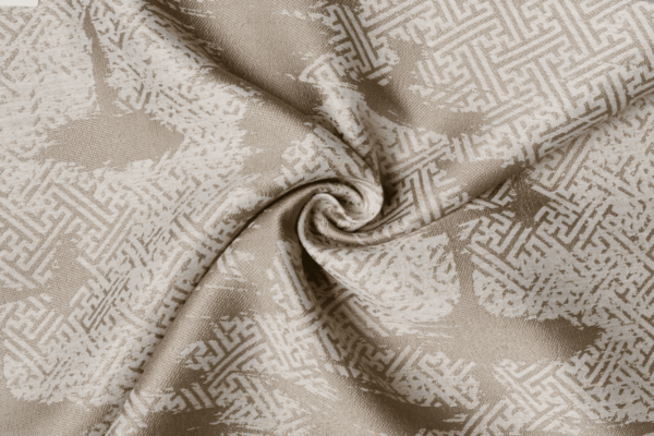 Tagus is part of the Monogram collection because of its ethnic influence. The geometric pattern is repetitive. The basic weave of the drapery is matt, while the interwoven pattern has a slightly metallic effect.