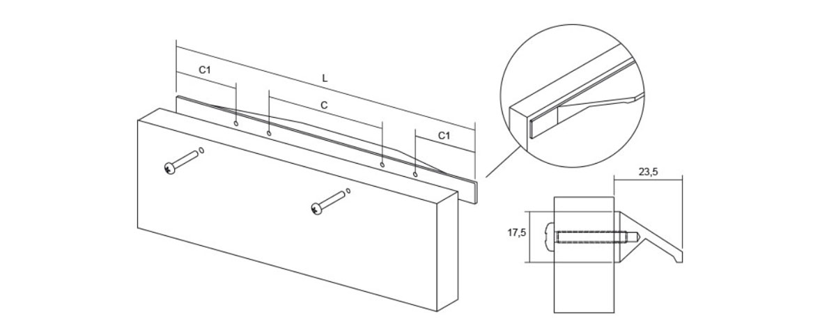 The Tamm is an aluminium profile handle with a stainless steel finish, and a slightly inclined trapezoidal shape that means that it can be fitted facing either up or down. Installation requires no machining. It is available in 14 sizes (from 140 to 1,190 mm), permitting installation in large size drawers and cabinets, occupying their entire width and guaranteeing an attractive and balanced visual effect.